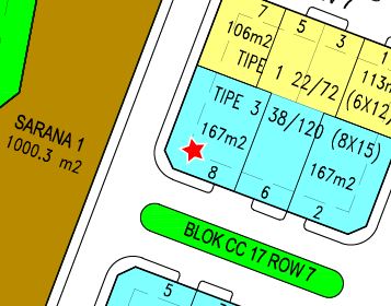 Ada satu rumah sudut di cluster Bukit Matoa, tipe 39/167. Luas tanah 120 ditambah 47m di sudut, sehingga ukuran tanah, lebar x panjang 11.13m x 15m. Lokasi dekat balai warga Bukit Matoa. Hadap Selatan. Ini merupakan Matoa 3, yang memiliki luas bangun 38m. Mengingat lokasi rumah di Hoek, maka luas bangunan berubah menjadi 39m, karena ada tambahan pintu samping. Siteplan cluster bukit Matoa dapat dilihat di tautan berikut Siteplan Bukit Matoa.